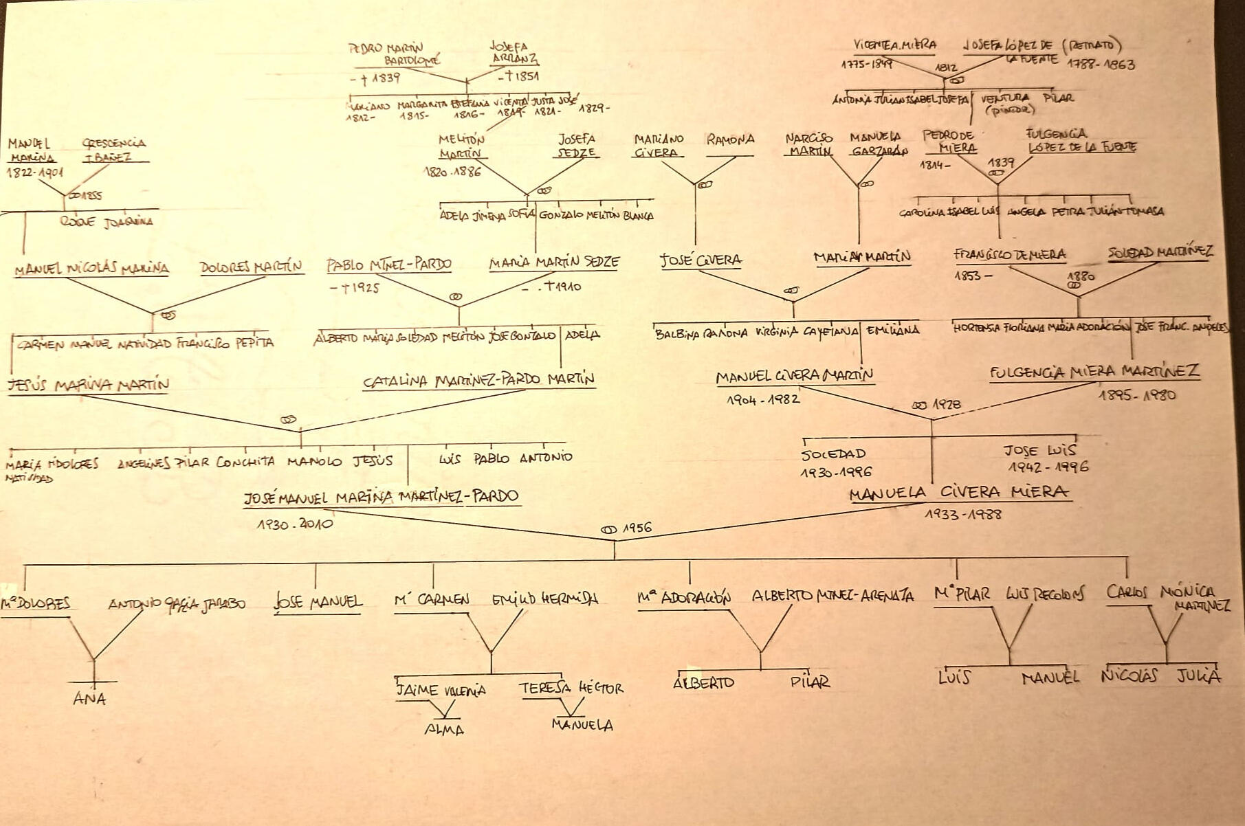 Lola hizo este árbol genealógico que reúne la historia de nuestras familias Marina, Civera, Martínez Pardo y Miera.